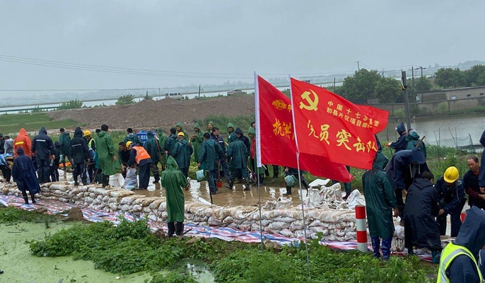 2020年安徽區域防汛形勢異常嚴峻,公司聞令而動,主動擔當。防汛搶險以來,先后投入2000余人次到防汛抗洪工作中,裝沙袋、筑堤壩、堵滲點、排查險情,克服機械材料等運輸困難,協助當地政府部門打響了多項防汛關鍵性戰疫。38℃高溫悶熱的環境下,防汛現場人人揮汗如雨,拿起編織袋、鐵秋,裝砂石的裝砂石,運沙袋的運沙袋,齊心協力,眾志成城抗擊洪水,和水位比高度,與洪峰比速度,不斷加高加固圩堤,有效抵御了高水位的浸泡強壓,防止堤壩塌方。