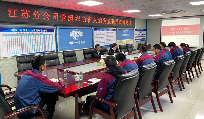 11月12日下午,十七冶江蘇分公司黨委書記韋俊春到南京大唐置安智能科技大廈項目黨支部做調研、講黨課。
