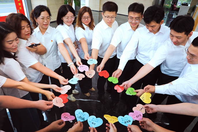 本次活動(dòng)在現(xiàn)場(chǎng)設(shè)置了“簽名墻”,邀請(qǐng)廣大干部職工在在大幅中國(guó)地圖上,抒發(fā)對(duì)祖國(guó)真摯的情感,將心里話說(shuō)給祖國(guó)聽(tīng)。每位員工撫摸地圖,將對(duì)黨和國(guó)家的深厚情感化作妙語(yǔ)佳句,寫進(jìn)心形卡片,就像許下一聲聲堅(jiān)定的誓言,一個(gè)個(gè)名字聚集在紅心之中,讓信心和力量在每個(gè)人的心中不斷匯聚升騰。“祝祖國(guó)母親生日快樂(lè)”“祝福祖國(guó)更加繁榮昌盛”一句句飽含深情的祝福,一句句樸實(shí)簡(jiǎn)單的話語(yǔ),承載著濃濃的祝福,寄托著對(duì)祖國(guó)美好明天的憧憬和期待。