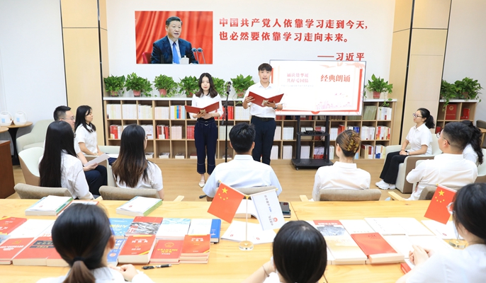 活動中,參會員工集體觀看微視頻《習近平的讀書故事》,進一步深入學習領會習近平文化思想,感悟總書記“愛讀書、讀好書、善讀書”的讀書之道。隨后,大家一起挑選、閱讀自己喜歡的書籍,結合個人的學習、生活、工作經歷和切身體會,依次分享《共和國通覽》《歷史的足跡》《不懈的奮斗》等著作以及《中國五礦企業文化手冊》的閱讀心得,在思想碰撞中豐盈智慧的底蘊,品味著墨香濃郁的文化佳肴。在經典朗誦環節,員工用滿懷真摯的情感、鏗鏘的韻律,誦讀了紅色經典篇目《中華頌》《大寫的中國》《紅旗頌》《我愛這土地》,流露著祖國繁榮發展帶來的喜悅與自豪,展現十七冶人積極向上、愛國奮斗的精神風貌。