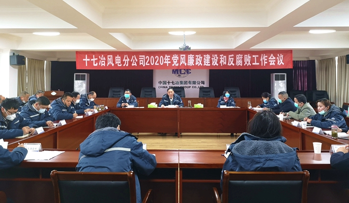 3月31日下午,中國十七冶集團風力與太陽能發電工程技術分公司召開2020年黨風廉政建設及反腐敗工作會議,公司領導班子成員,紀委委員、經理助理、副三總師、機關主管級負責人,實體單位主任、書記以及在馬項目經理參加了會議。