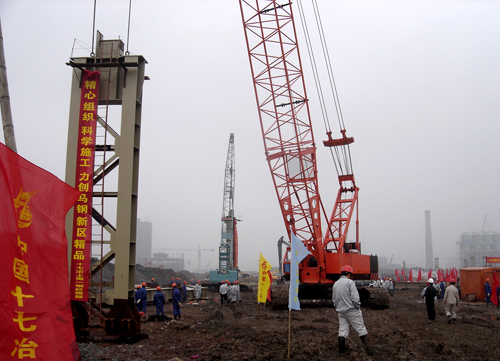 150噸履帶式起重機(jī)在馬鋼新區(qū)煉鋼連鑄工程吊裝作業(yè)