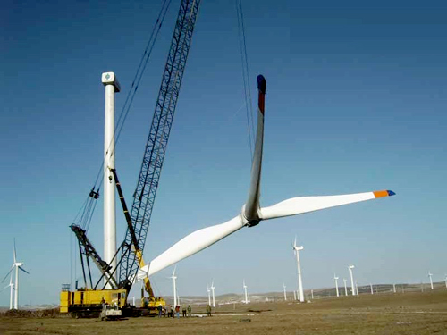 300噸履帶式起重機在內(nèi)蒙古草原安裝風(fēng)力發(fā)電機組