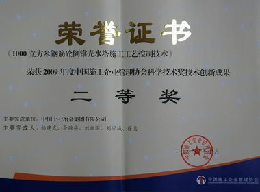 國內工程建設行業最高科技獎——中國施工企業管理協會科學技術獎日前揭曉,十七冶集團共獲4個獎項:十七冶集團公司榮獲科學技術獎技術創新先進企業;城建工程技術公司研制完成的“1000m3鋼筋砼倒錐殼水塔施工工藝控制技術”和路橋工程技術公司研制完成的“三維鋼箱梁制作安裝施工技術”榮獲技術創新成果二等獎;羅東榮獲技術創新先進個人。