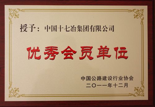 20111210,在北京召開的中國公路建設行業協會第三屆代表大會上,中國十七冶集團有限公司被授予“百家優秀會員單位”榮譽稱號。這是中冶集團內部唯一獲得此表彰的單位。