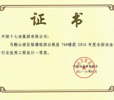 8月31日,從中國冶金建設協會獲悉,由中國十七冶集團工程設計公司設計的馬鞍山銀塘組團公租房76#樓、蘭州新區綜合保稅區工程EPC總承包三標段兩個項目分別榮獲全國冶金行業優秀工程設計一等獎和三等獎。