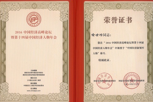 2016年度中國經濟年度人物頒獎典禮以“聚焦經濟發展、評點新聞人物”為主題,由國家發改委中國經濟導報社、國家發改委宏觀經濟管理編輯部、《中國企業報》集團聯合主辦。本屆經濟年度人物評選標準以“責任、創新、挑戰”為關鍵詞,以“創新力、影響力、貢獻力、發展力、經營力”五大評選參數考量候選人資格,表彰對中國經濟各領域做出突出貢獻和勇于創新的企業家。
