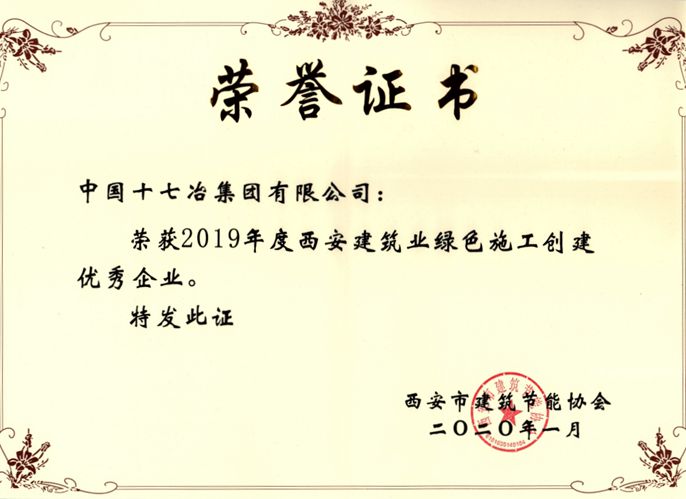 4月3日下午,中國十七冶集團收到西安市建筑節(jié)能協(xié)會頒發(fā)的2019年度西安建筑業(yè)綠色施工創(chuàng)建優(yōu)秀企業(yè)獎證書。