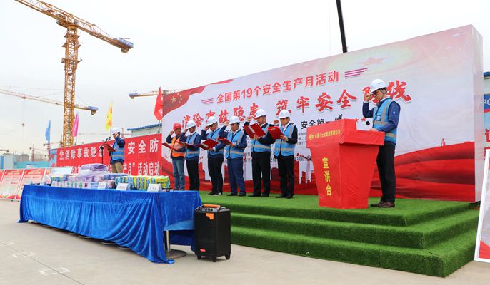 各項目部在活動儀式上宣貫公司、項目部安全月活動實施方案,解讀安全月各階段活動的計劃及要求,并結合公司“安全環保管理提升年”和“安全生產月”活動作出動員部署,強調安全生產是每個人的神圣職責,全體員工要充分認識開展“安全生產月”活動的重大意義。
